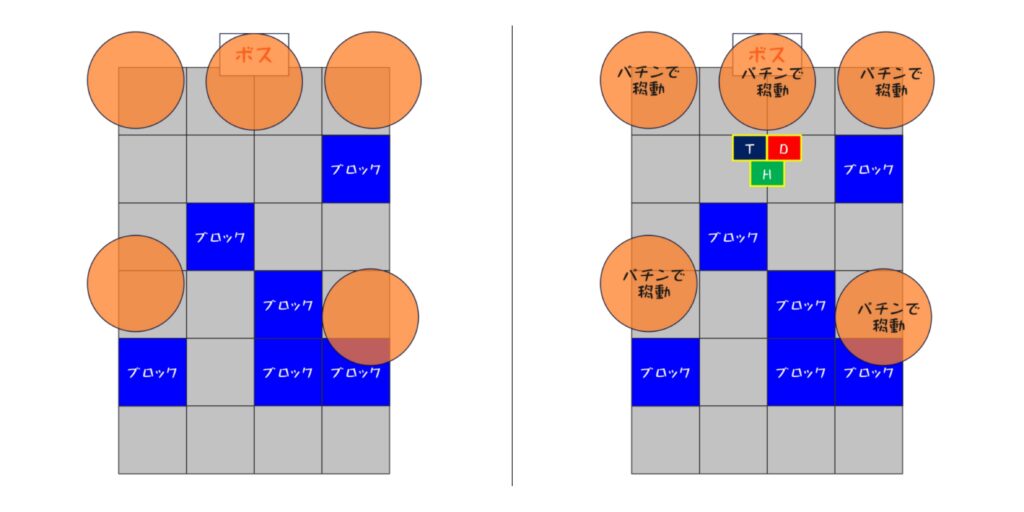• 左右にタレットが出現 → 直線範囲